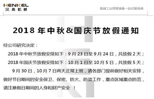 漢高機械在此祝大家國慶節(jié)快樂!國慶佳節(jié)喜來到,為你綻放快樂的煙花,愿你快樂每時刻;為你放飛健康和平鴿,愿你身體健康壯如牛;為你飄揚成功的彩旗,愿你財源廣進,事業(yè)順暢步步高。國慶快樂!