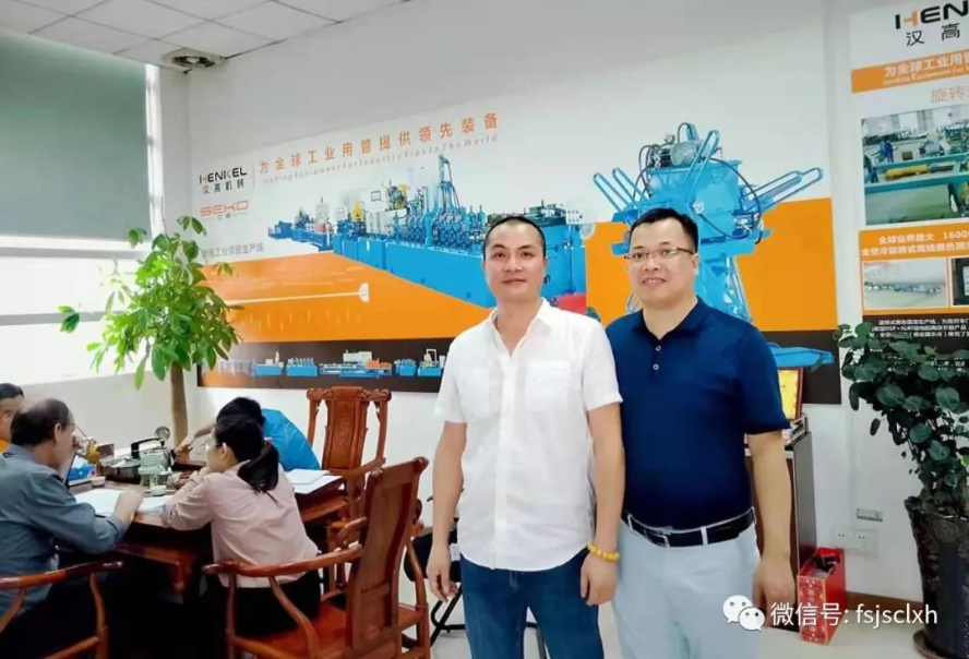 周天首先前往參觀漢高機械研發(fā)、生產車間后,聆聽肖遠平先生、呂海輝先生兩位關于高端工業(yè)用管裝備和不銹鋼水管設備的特色說明。漢高機械致力于為全球工業(yè)用管智造領先裝備,不僅受到國內久立、武進、德威、鎮(zhèn)海石化、粵華等國內知名不銹鋼管企業(yè)的好評,還大量出口海外。在交流現(xiàn)場,周天還偶遇漢高機械在澳大利亞的用戶PETER先生。