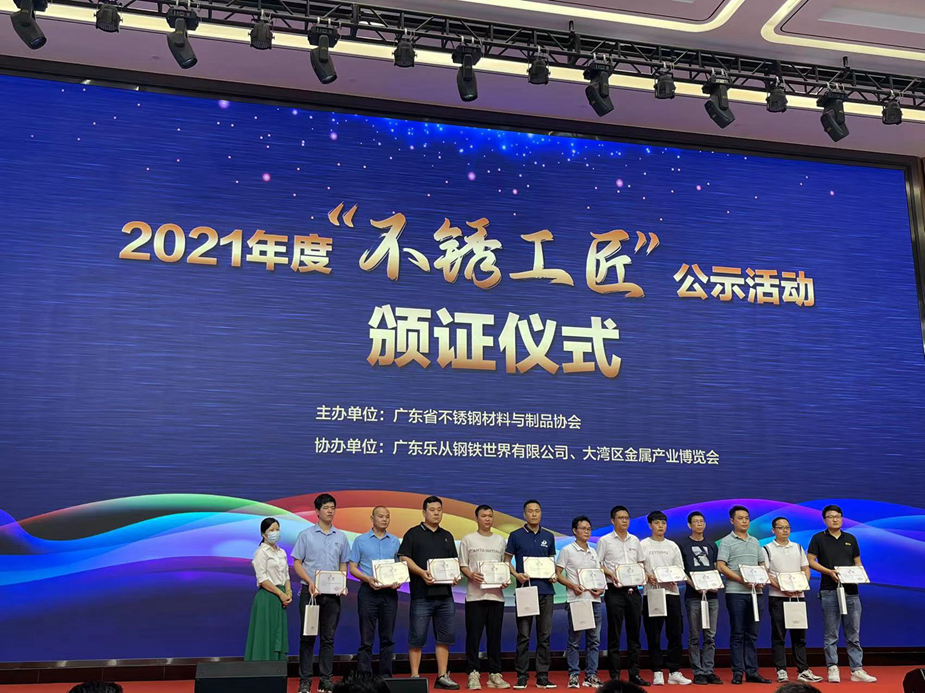 6月15日下午,由廣東省不銹鋼材料與制品協(xié)會(huì)舉辦的2021年度“不銹工匠”公示活動(dòng)頒證儀式在理事單位樂(lè)從鋼鐵世界總部大樓多功能會(huì)議廳舉行。本次公益活動(dòng)旨在進(jìn)一步貫徹落實(shí)省委省政府“廣東技工”工程,大力弘揚(yáng)工匠精神,培育選樹(shù)一批先進(jìn)榜樣,進(jìn)一步營(yíng)造尊重人才、崇尚技能、追求品質(zhì)的行業(yè)氛圍,持續(xù)擦亮“不銹優(yōu)品·廣東質(zhì)造”的名片。