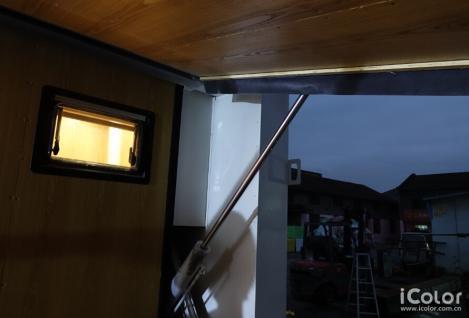 保暖——由于當(dāng)?shù)匾归g氣溫較低,又保暖棉填充的夾層可以保持內(nèi)部的溫度;另外還配有取暖器。為保證安全,設(shè)計(jì)師在房間內(nèi)安裝了一氧化碳感應(yīng)器,另外取暖機(jī)也有氣體開(kāi)關(guān)閥,保證無(wú)一氧化碳產(chǎn)生。側(cè)翼展開(kāi)的平臺(tái)上也定制了可收納的帳篷,能夠防雨隔風(fēng)保暖。