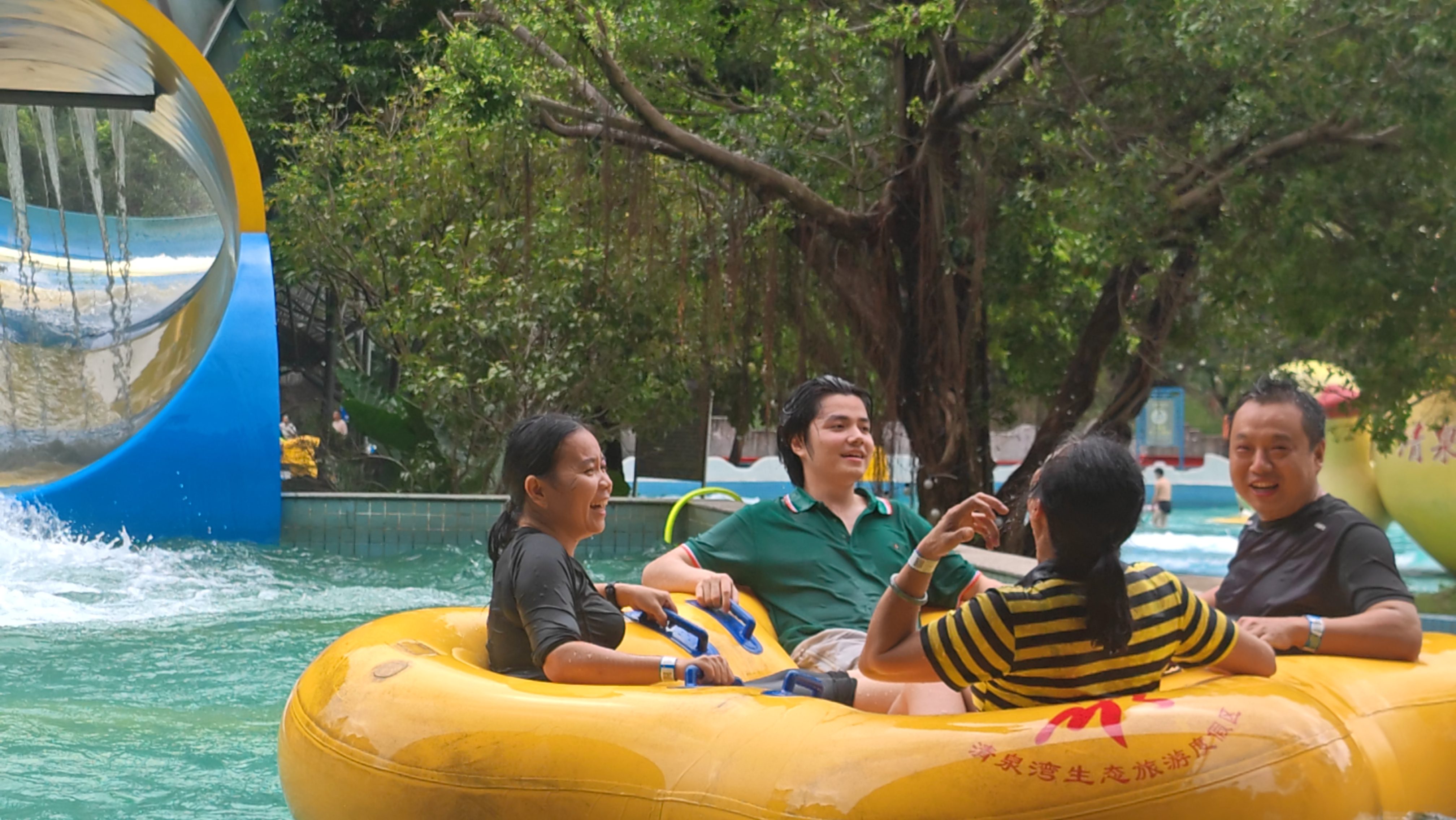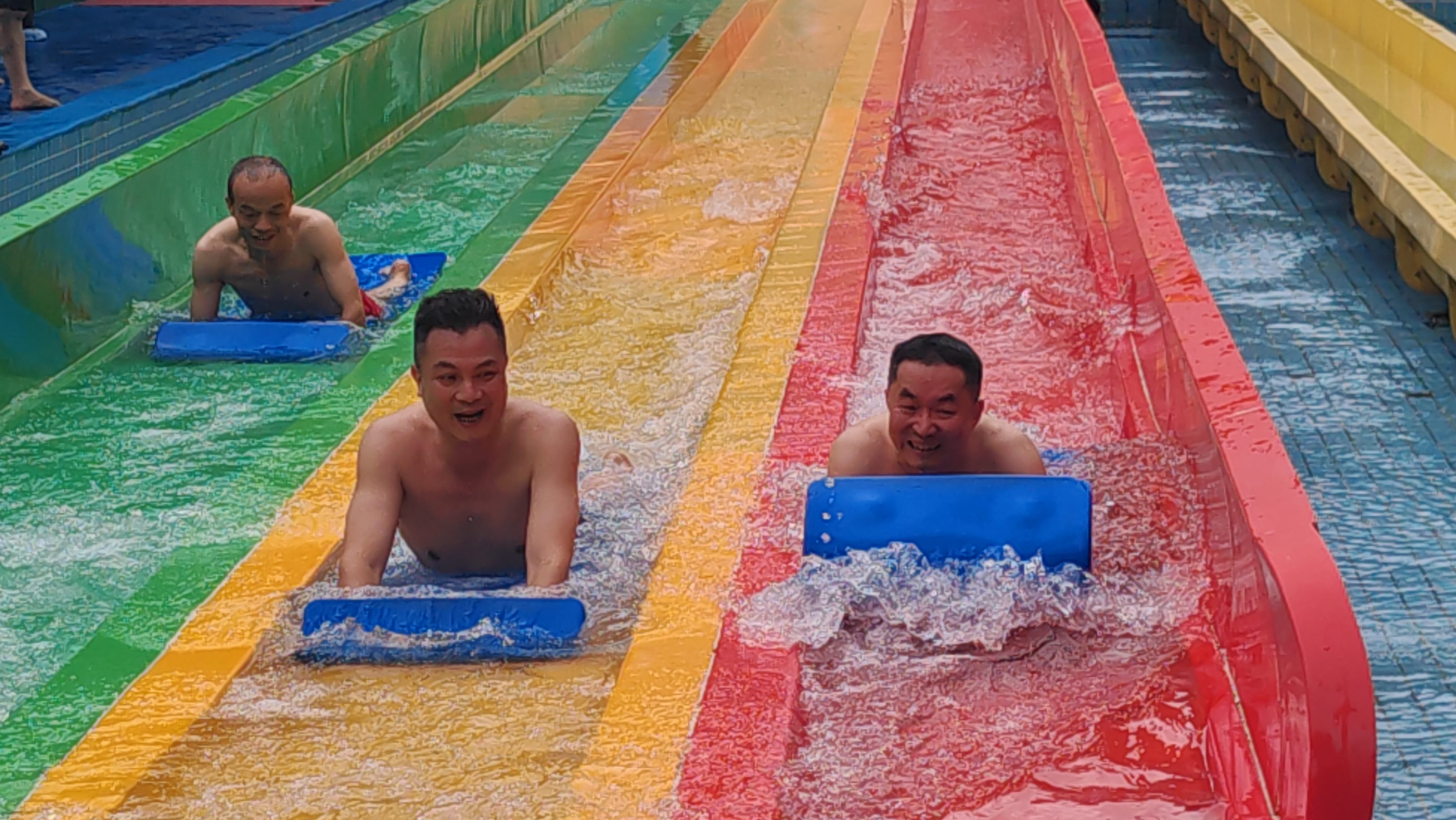 第二天的行程充滿了夏日的激情與歡樂。在水上樂園里,各種刺激的水上項目讓大家盡情釋放活力。從高空滑道俯沖而下的尖叫,到造浪池里隨波逐流的歡笑,每個人都沉浸在純粹的快樂之中。