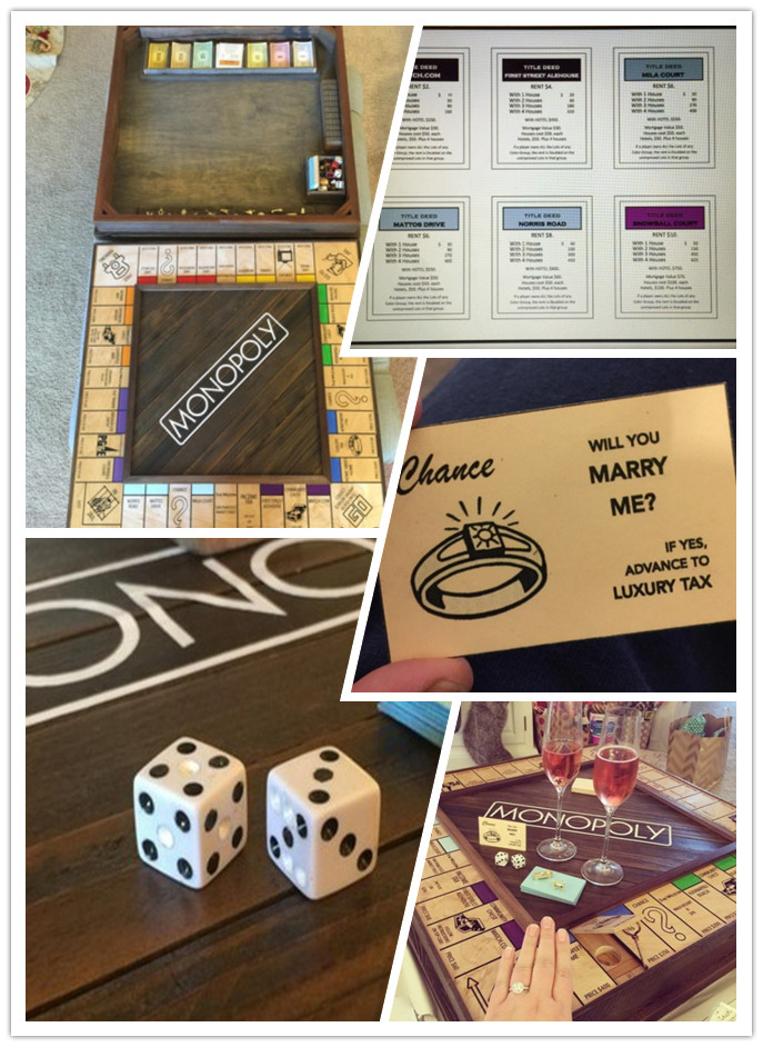 賈斯?。ú皇悄莻€比伯...)和女票米哈爾從高中時代就是桌游“大富翁”的腦殘粉。他打算送給米哈爾一個新的大富翁棋盤,并借此向她求婚。這個大富翁棋盤絕壁是世上最獨一無二的,因為它不是買的,而是賈斯汀花了三周時間親自設(shè)計,并拜托做木匠的好基友打造而成,上邊的各種地名全是他和女票一起長大或者去過的地方。為了確保求婚成功,他特意在游戲中設(shè)計了一張機(jī)會卡,對應(yīng)棋盤的第七格,上面寫著“你愿意嫁給我嗎?”又為了確保女票能在游戲中將骰子順利擲出“7”,他更是想了一個讓人哭笑不得的主意,見下圖左下角。于是女票就像掉入陷阱的小羊,妥妥地被賈斯汀套牢啦。其實這叫投其所好,如果你的女朋友熱衷于密室逃生的腦殘粉,就設(shè)計一場密室逃脫游戲?qū)⑺卫卫ё“伞?/span>