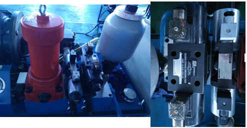 八、漢高正品的液壓站配件上,減壓閥,比例閥、電磁閥均采用臺(tái)灣久崗品牌;仿制品的液壓站上的配件均采用國(guó)產(chǎn)雜牌。如下圖所示: